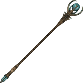 Cajado feito com Esmeralda encontrados dentro de Cubos vulcânicos, apesar de ser muito simples, tem um poder incrivel. Esse Cajado foi feito pela Feiticeira de Braga.